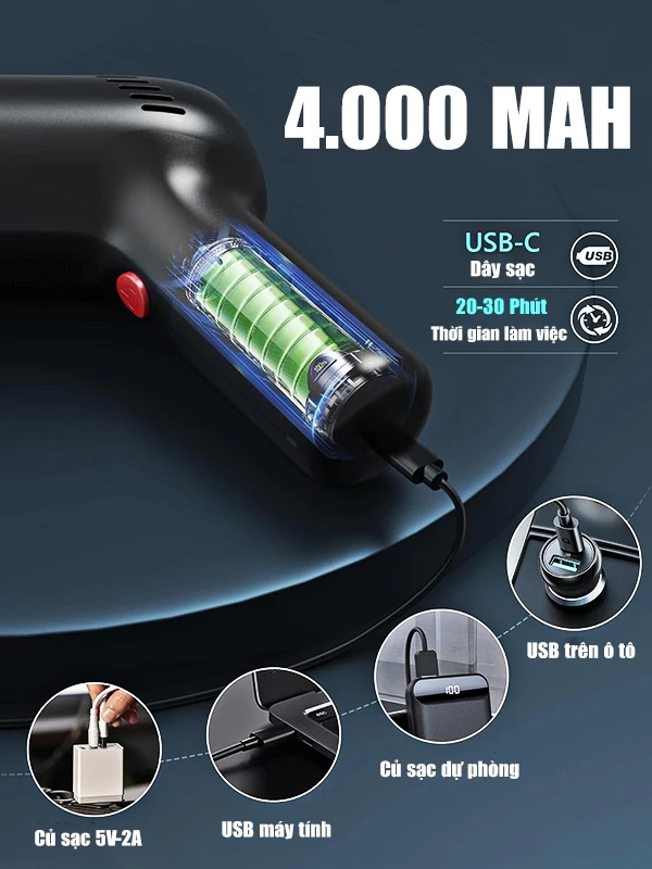 Chắc năng: Hút bụi giường nệm, ô tô, sàn nhà, lông chó mèo, tóc…